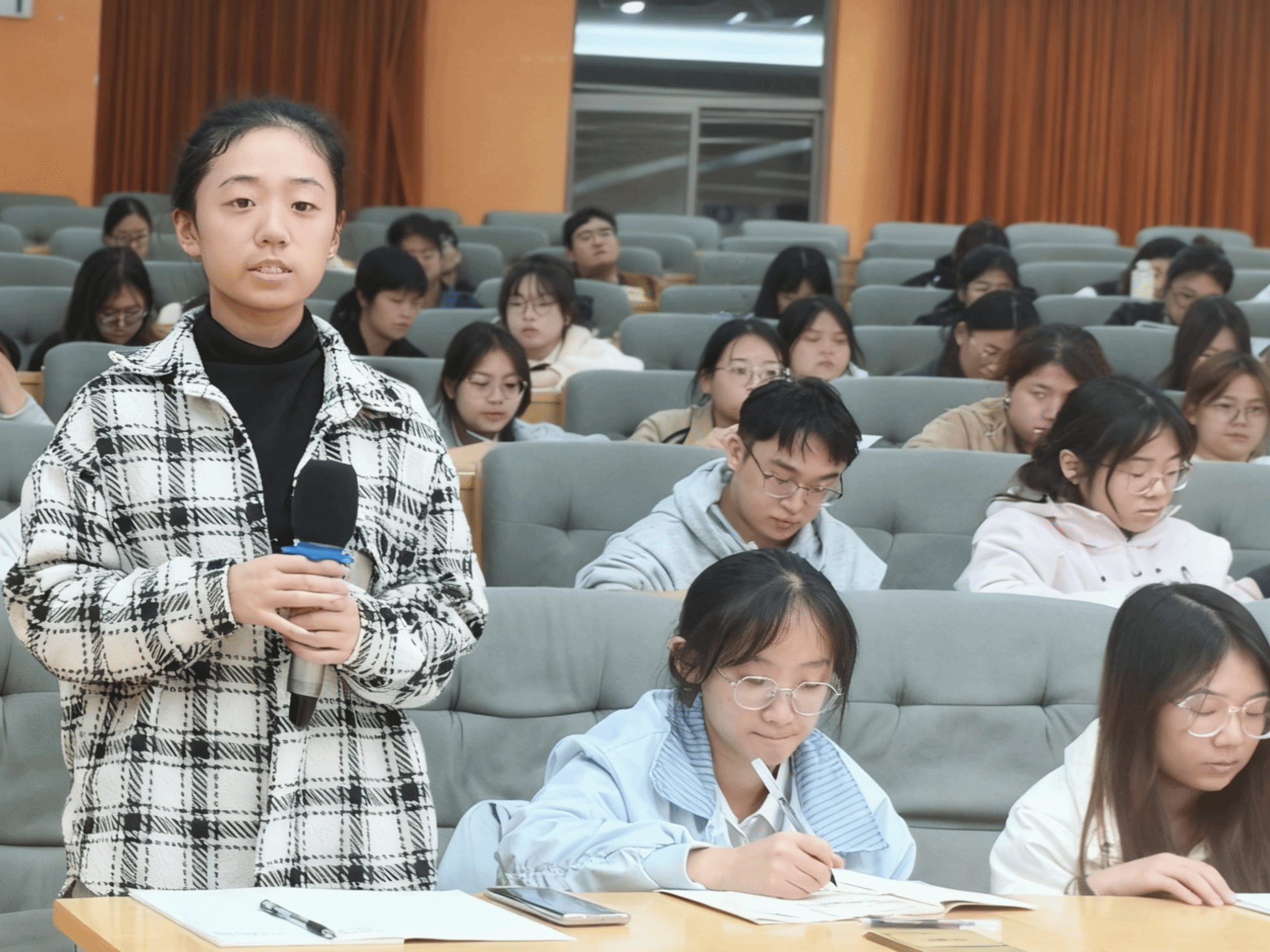 最后,她讲解了“中国式现代化的五大本质特征”:从“人口规模巨大”的独特国情,到“全体人民共同富裕”里“脱贫攻坚一个都不能少”的民生温度;从“物质文明与精神文明相协调”的发展底色,到“人与自然和谐共生”的生态答卷,再到“走和平发展道路”的大国格局——一个个鲜活实例,让抽象的理论长出了“烟火气”,也让同学们读懂了:中国式现代化,是“为中国人民谋幸福、为中华民族谋复兴”的实践路径。