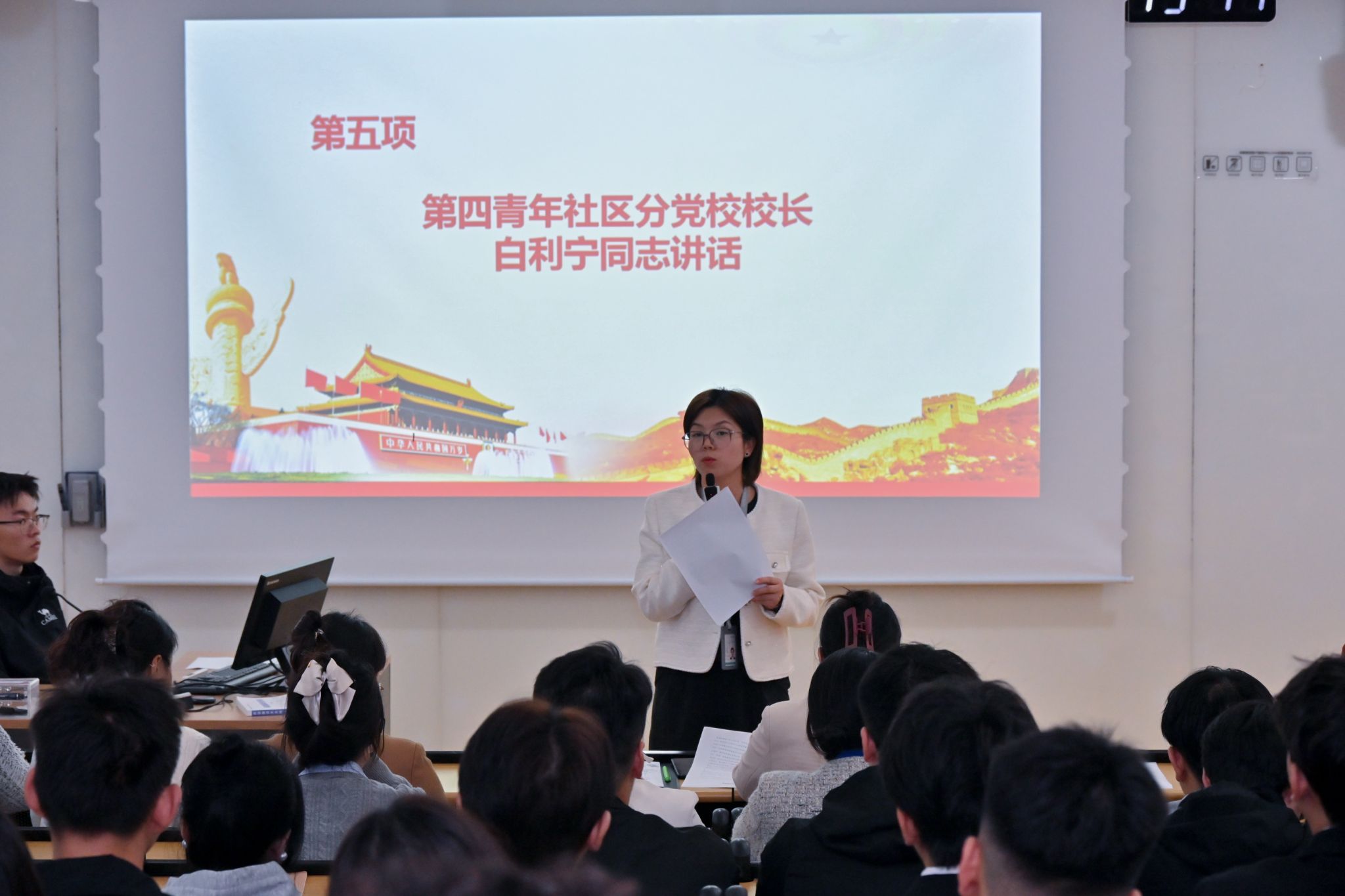 2025年11月4日,KY开元集团官网入口第四青年社区分党委在南D-001教室隆重举行2025年下半年入党积极分子培训班开班典礼。分党委书记白利宁、副书记黎舒婷、各党支部书记及本期94名入党积极分子参加典礼。