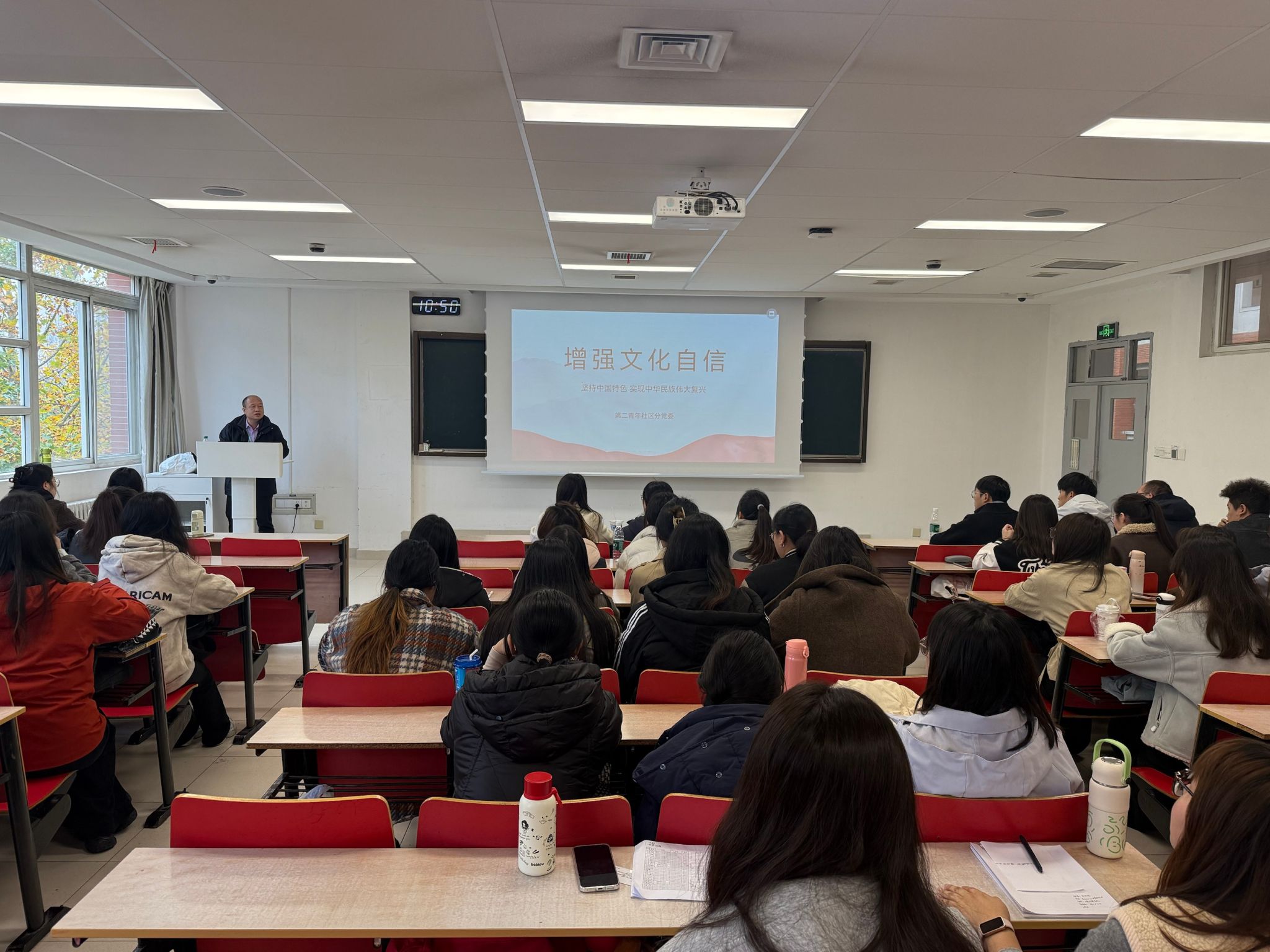 为深化党员干部及发展对象对文化自信的认知,筑牢民族复兴道路上的思想根基,第二青年社区分党委于11月9日在北C-309教室组织开展《增强文化自信—坚持中国特色实现中华民族伟大复兴》专题讲座,本次党课由张庚老师主讲,58名发展对象参与现场学习。