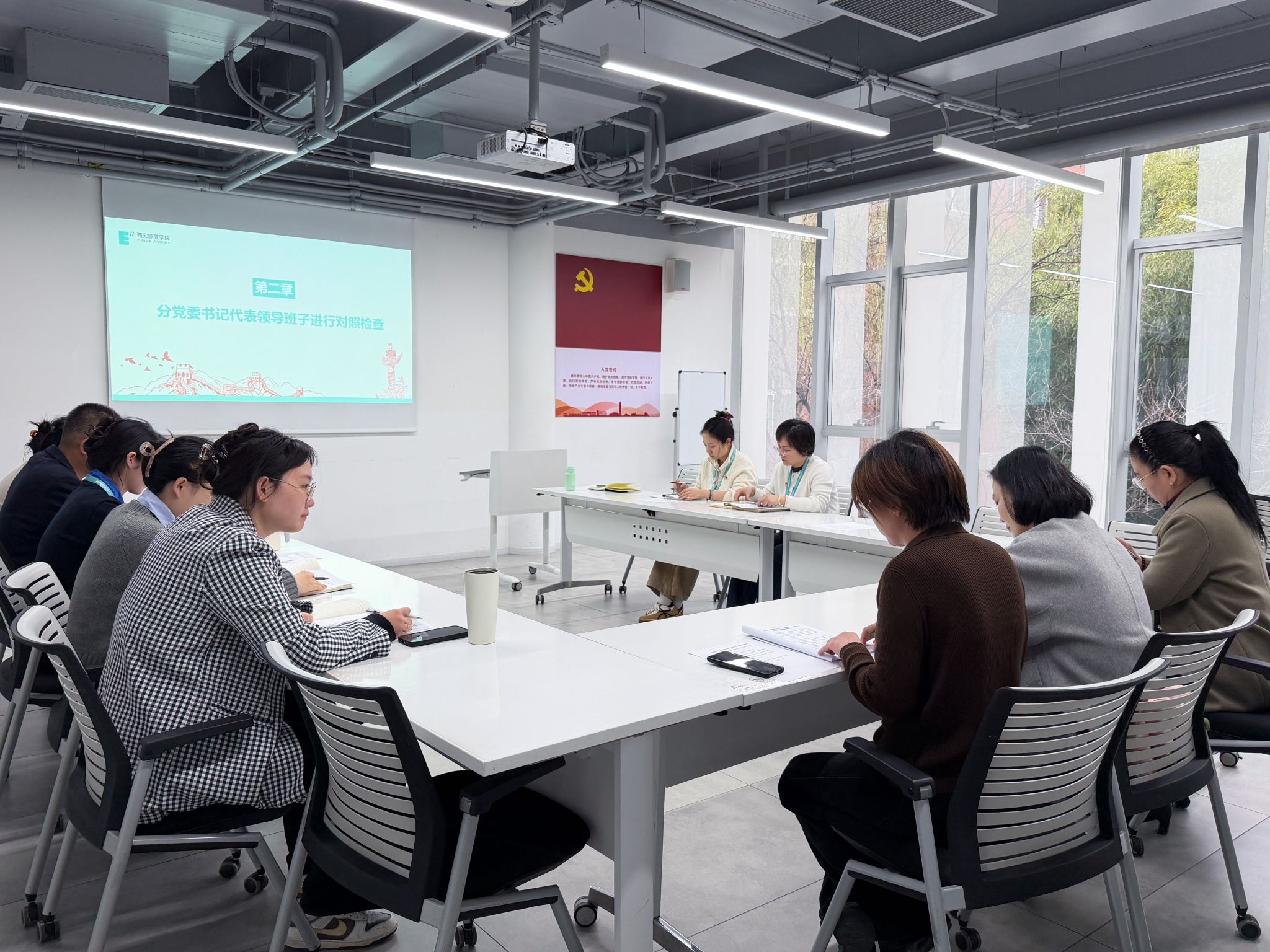 分党委副书记黎舒婷同志通报了本次民主生活会会前准备情况,详细说明了会前深入贯彻中央八项规定精神学习教育情况、2024年度民主生活会整改措施落实情况及本次会议意见征集、谈心谈话、对照检查材料撰写等各项筹备工作的落实情况,确保会议严格对标校党委要求,规范有序召开。