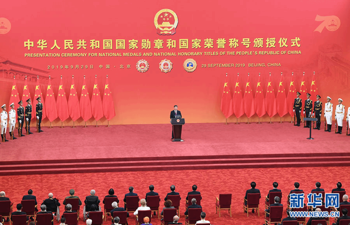习近平向国家勋章和国家荣誉称号获得者颁授勋章奖章并发表重要讲话