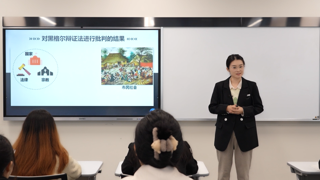 作为欧亚思政教师队伍中的新鲜血液,杨洁也是一位有趣幽默的老师。她的上课方式诙谐生动,时常采用“讲八卦”的方式,通过讲述自身职场的经历和周围朋友趣事的方式来为学生们解读枯燥乏味的思政原理。与社会热点、国际趋势相结合的马原理论,再与活泼有趣的氛围感相加持,学生们更愿意去主动接受、主动参与、主动学习。