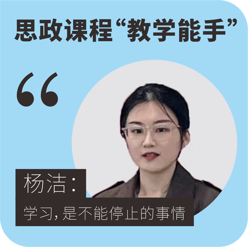 “教学是具有滞后性的,人生的路还很漫长。同学们现在对于课本上所学到的知识和理论或许似懂非懂,但是在未来的某一天一定会恍然大悟,感同身受,这就是教育的魅力。”未来,杨洁希望在教书育人的同时,也能与学生们教学相长,共同进步。