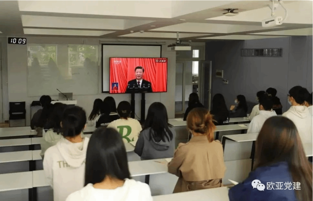 因疫情封校期间居家在线办公的学校教职工党员,均通过电视、网络等方式收听收看实况转播。10月16日上午,观看人数达13000余人。