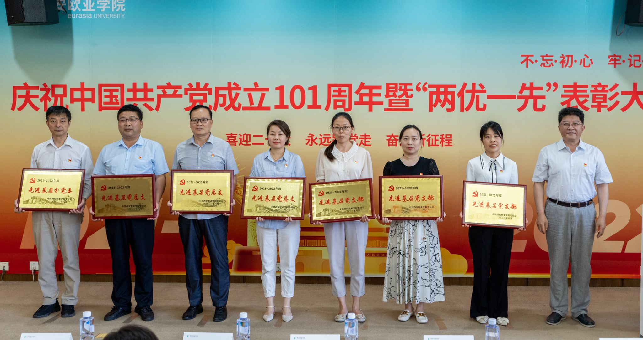 校党委书记于孟晨同志为获得先进基层党组织代表颁奖