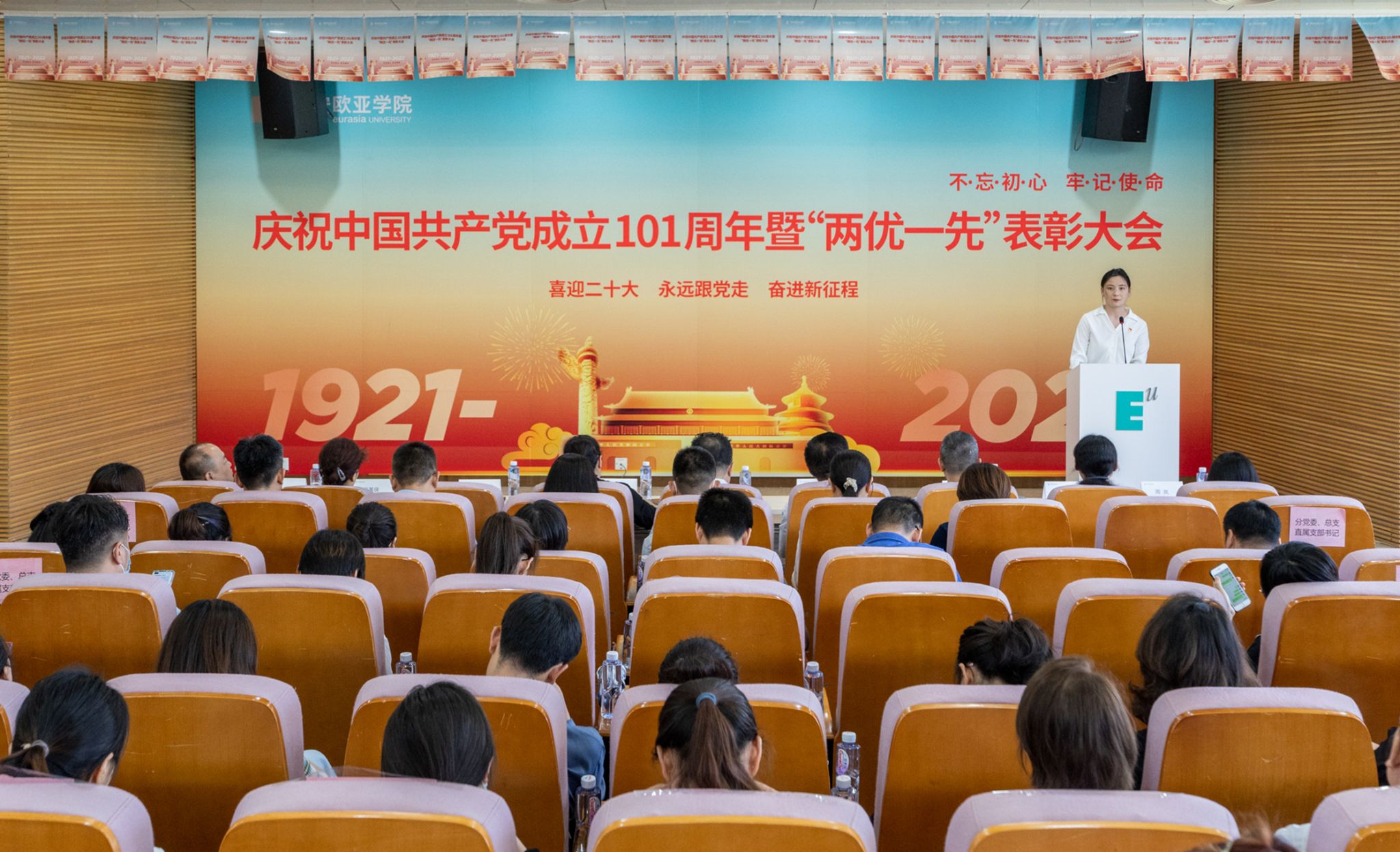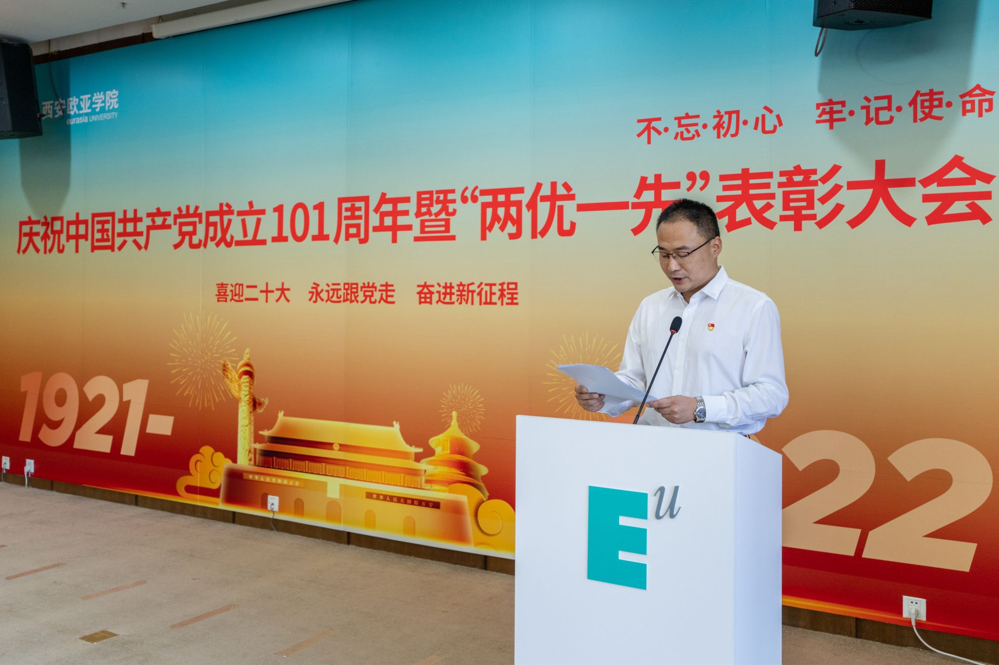 6月29日,KY开元在图书馆学术报告厅举行庆祝中国共产党成立101周年暨“两优一先”表彰大会。大会由校党委副书记、纪委书记王志强同志主持。学校党政主要领导及优秀师生党员代表参加了大会。