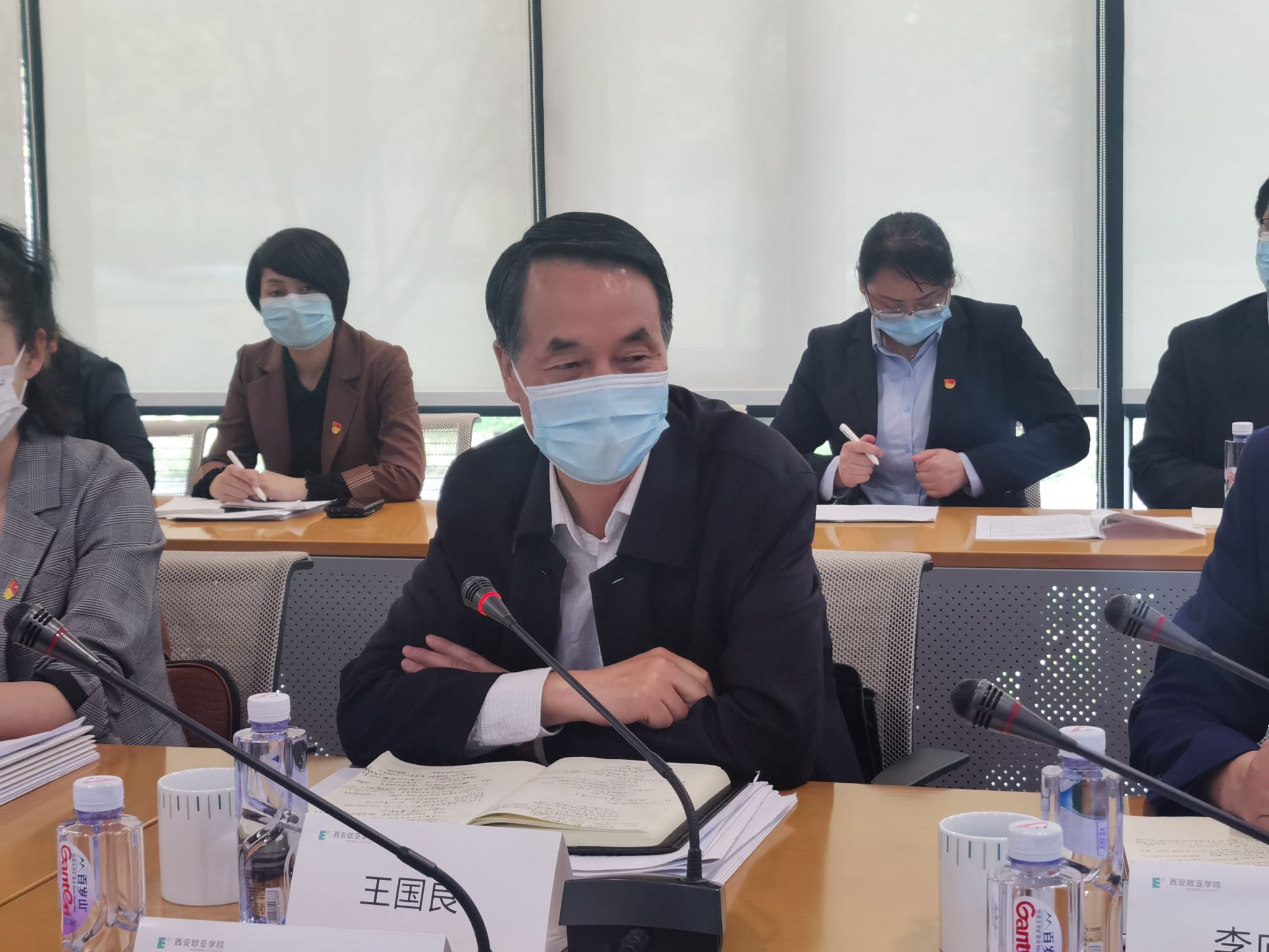 王国良组长代表评估验收专家组反馈意见,充分肯定了学校新时代高校党建“双创”工作取得的积极成效。他表示,学校党委高度重视,全力推进新时代高校党建“双创”培育创建工作取得了积极的成效;学校办学特色鲜明,教育改革取得丰硕成果,是陕西民办高等教育的一张靓丽名片。两个“双创”培育创建党支部能够严格对标对表“七个有力”要求,在党建与业务的融合方面进行有益探索,党建工作规范扎实,有特色、有亮点,党建“双创”示范引领作用凸显。他希望学校党委和接受评估验收党支部要进一步总结凝练再提升,强化宣传推复制;进一步对标短板下功夫,改革创新促活力;进一步党建业务再融合,围绕中心抓党建,抓好党建促发展。