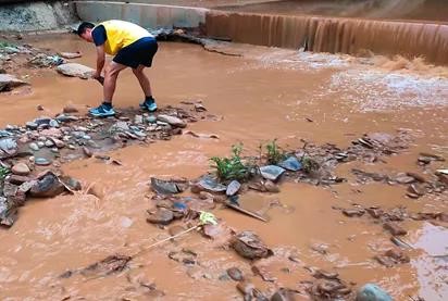 (刘恒瑞清理淤堵的河道)