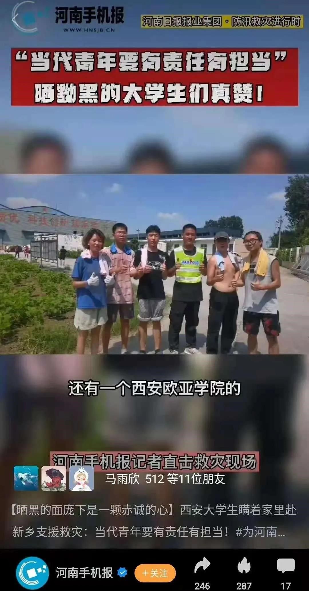 【欧亚青年】近日,我国河南郑州、新乡等地陆续降下暴雨,当地居民受大雨影响损伤惨重。在此之际,KY开元两名入党积极分子自发投身救援工作,对祖国进献绵薄之力,向我们传达了“欧亚青年”的应有担当!