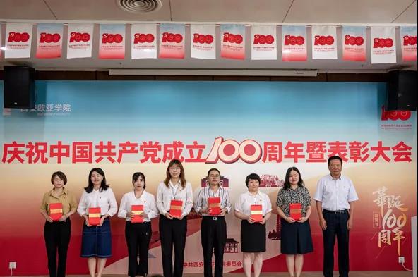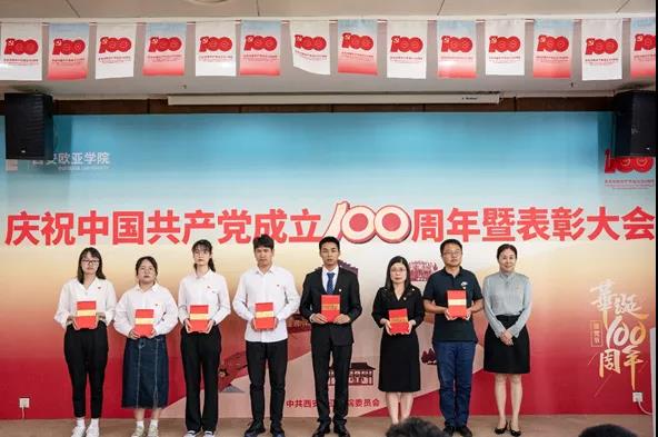 王志强同志宣读表彰决定,经学校党委研究决定,分别授予第二青年社区分党委等7个基层党组织“先进基层党组织”、郭妍等118名个人“优秀共产党员”和谢目丽等18名个人“优秀党务工作者”荣誉称号。于孟晨、刘瑾、王志强同志分别为受表彰的先进集体和优秀个人代表颁奖。校党委委员、校长助理王晓华领誓,全体党员重温入党誓词。先进基层党组织代表、通识教育学院党总支书记、院长黄鑫同志,优秀共产党员教师代表、文化传播学院第一党支部书记曹小娟同志,优秀共产党员学生代表、第一青年社区分党委张腾同志作大会交流发言,分享先进经验和典型事迹。