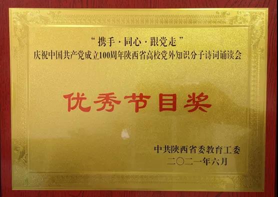 经过展演,KY开元诗词朗诵节目《没有共产党就没有新中国》得到中共陕西省委教育工委和其他学校的认可和好评,获得“携手•同心•跟党走”庆祝中国共产党成立100周年陕西省高校党外知识分子诗词诵读会“优秀节目奖”。
