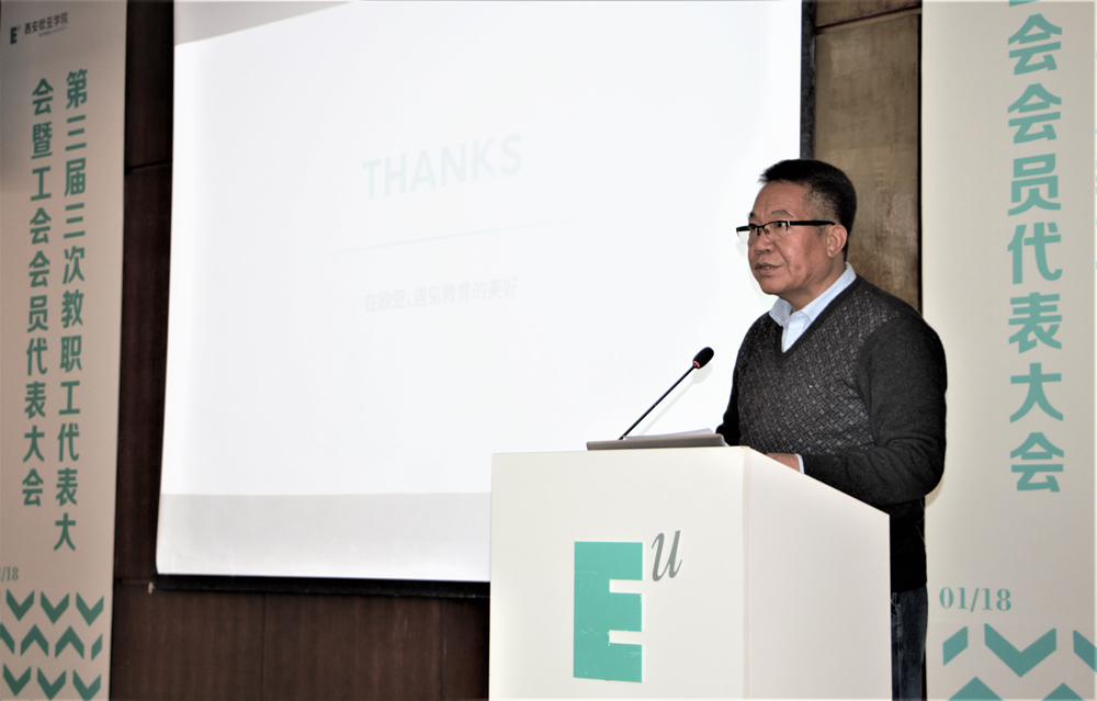 大会号召:全体教职工在学校党委领导下,以十九届五中全会精神为指导,围绕学校“十四五”发展规划落地,以改革的激情,设计的思维,主人翁的态度,团结协作、齐心协力,高质量完成2021年各项工作。