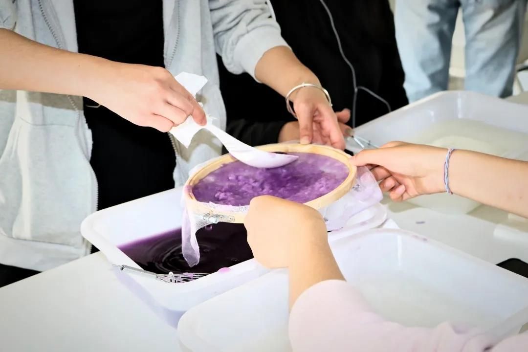 同学们个个乐此不疲,兴趣盎然。专注的神情、小心翼翼的动作,好像生怕吵醒了正在凝固的奇特纸张。同学们兴奋地交谈着、欣赏着,感受着传统文化的魅力。一起来感受制作过程吧!