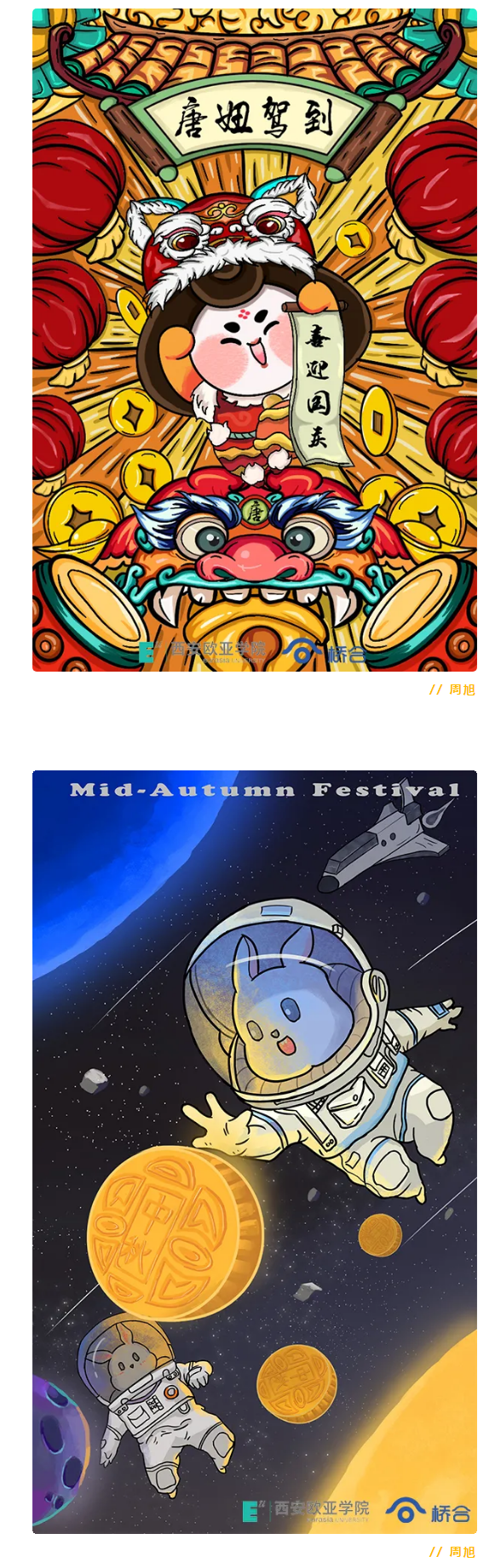 举国同庆日,阖家团圆时。2020年国庆遇见中秋,佳节欢愉双倍而至,KY开元在桥合动漫实习的高职学院18级动漫专业的同学们,借着这个美好时刻,将自己的平面设计能力与佳节喜悦气氛相结合,设计出可爱的动漫人物“唐妞”,为所有人献上一份特别的礼物,一起来看吧!