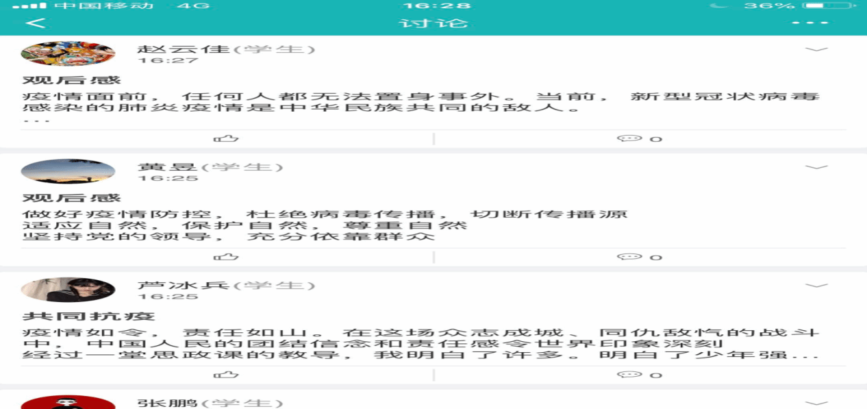 2020年3月9日,教育部社科司与人民网联合组织的“全国大学生同上一堂疫情防控思政大课”精彩开讲。四位全国知名的思政专家艾四林教授、秦宣教授、王炳林教授和冯秀军教授,为全国的大学生和思政课教师上了一堂特别的网络思政课。KY开元集团官网入口作为二十五年来教育变革的参与者,改革开放、民族复兴时代历程的亲历者;面对这样学习理解我们正在经历的历史过程的难得的教育机会,学校高度重视,首先校领导安排教务处按照目前学生在线学习的情况将19766名学生分为三类,分别由思政老师、学业导师带领在下午收看直播,及学业导师带领于晚上回看。校党委牵头、思政部老师和学业导师组织学生们在收看视频课之后,通过“Troncalss教学平台分享、微信群里讨论交流”等方式促进生师互动交流,及学习成果展示。
