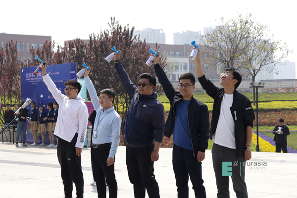 经过激烈角逐,“Skr人”队夺得本次5X5迷你马拉松赛事冠军,全程用时50分39秒,“八一哨位”队和“什么都行”队分获二、三名,全校逾900人完成比赛,展现了欧亚学子积极向上的气质和精神风貌。