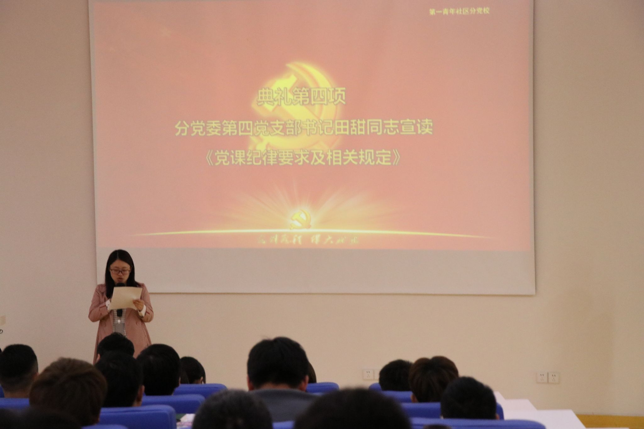 为了进一步提高入党积极分子思想觉悟,深入贯彻十九大精神、弘扬社会主义核心价值观,学习党的基本理论和基本路线、基本纲领、基本经验和基本知识,KY开元集团官网入口第一青年社区分党校于2019年4月15日12:40在西C002举行第八期入党积极分子培训班开班典礼。