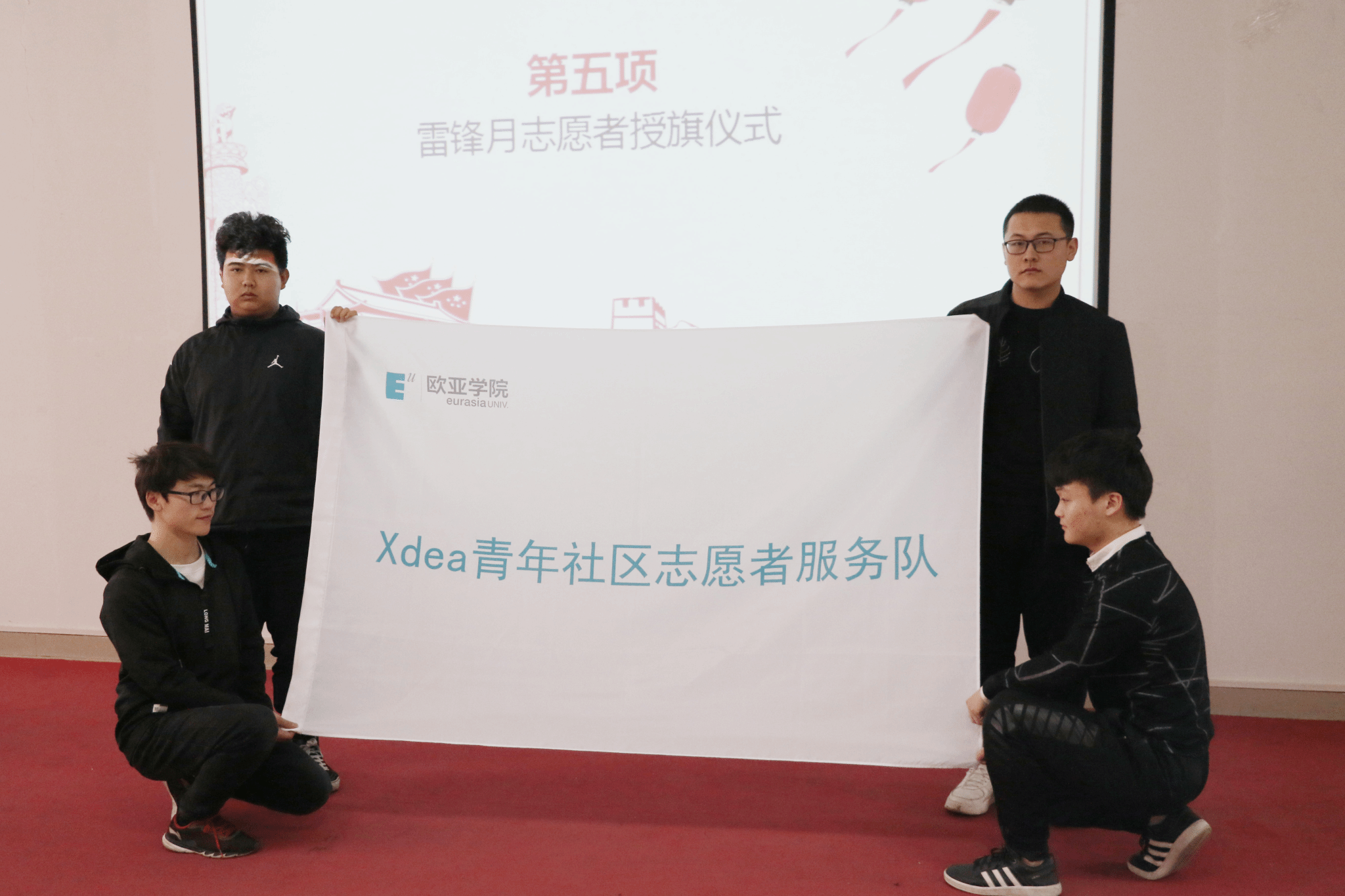启动仪式接近尾声,第一青年社区分党委书记张成同志向志愿者授旗,同时也是向我们发号了践行雷锋精神的施令。