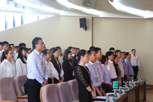 大会在庄严的国歌声中拉开帷幕。