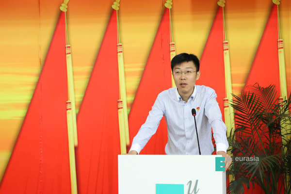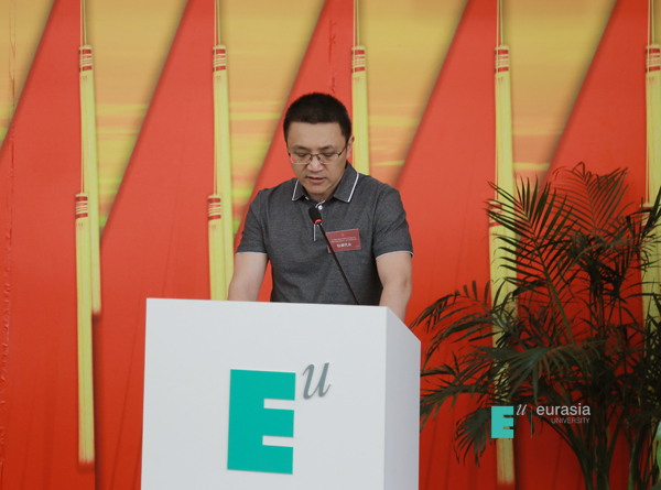 长安大学团委书记张永代表兄弟院校发言。他指出,欧亚学院各项事业快速发展,办学水平不断提升,社会声誉不断扩大,取得了引人瞩目的成就。许多宝贵经验和创新值得广大兄弟院校团委学习和借鉴。他希望各高校团委互相砥砺,精诚团结,共同发展。在新时代下,面对新使命,继续加强合作,深化交流,相互学习,共同谱写学校共青团事业的新篇章。