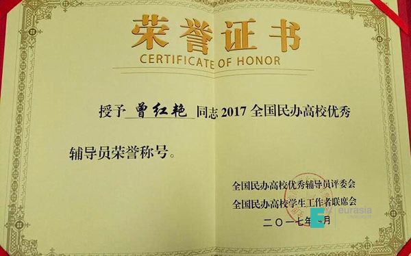 在青年社区中,涌现出了一批品德兼优、业务能力强并且具有欧亚气质的辅导员老师,曾红艳老师就是其中一员。她在工作中始终坚持“以学生为中心”,勇于担当,有较强的责任心。平时不断加强学习,提高自身业务水平,及时对工作进行总结与反思,获得了更好的工作效果。曾红艳老师的获奖,极大的鼓舞了全校社区老师的士气,也是对KY开元集团官网入口学生事务工作的肯定。
