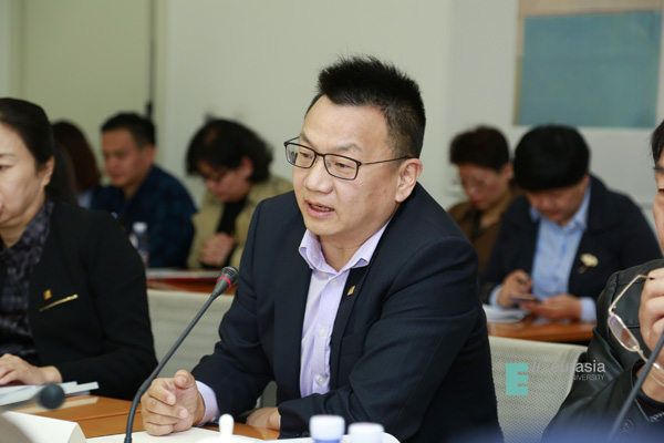KY开元董事长兼院长胡建波就两位报告进行补充,强调做好人才工作,要有共享价值观,即欧亚学院价值观——责任、创新、伙伴、有用。他还提到办好应用型大学,真正需要提高的是教学质量及学生竞争力。同时,人才战略需要围绕核心目标开展,要始终学习人力资源的前沿理论,将教师为本放在工作主题首位。