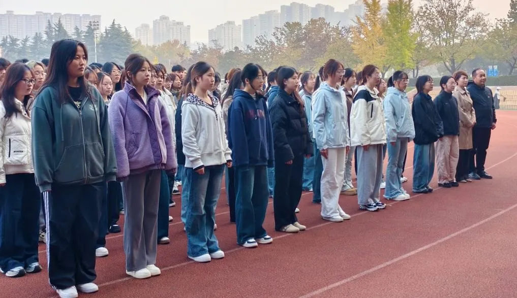 当晨光渐渐洒落,国歌的激昂旋律在操场响起,全体师生肃立注目,五星红旗迎着微风,于晨光中缓缓舒展、冉冉升起。那抹鲜艳的中国红,映照着一张张坚定的面庞,将家国情怀与青春信念,牢牢镌刻在每个人心中。
