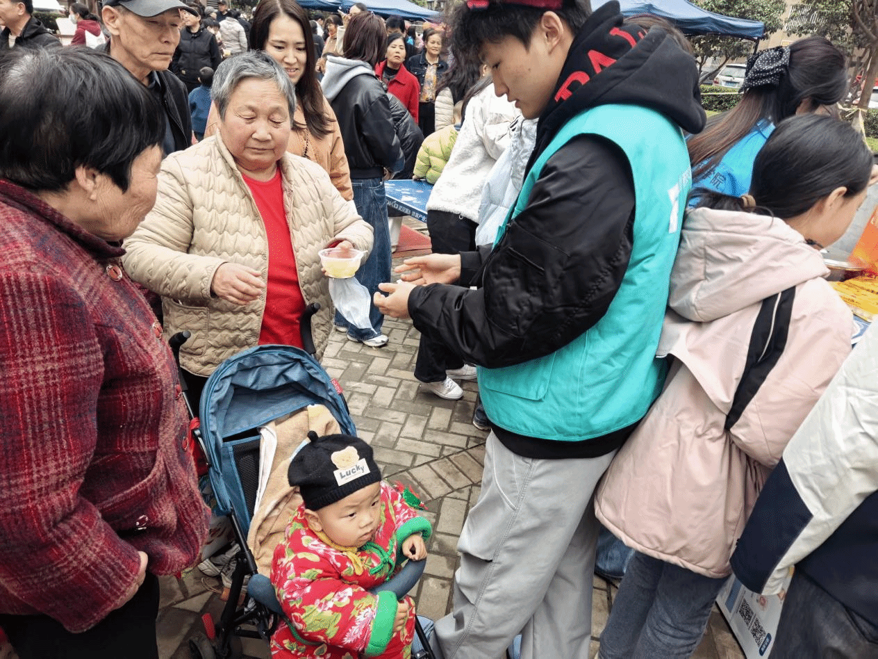 志愿者将热乎的汤圆送到老人手中。"平时家里就我一个,今天这么多'孙子孙女'陪我闹元宵,热闹!"杜城街道王爷爷接过汤圆时说。甜的不是汤圆,是有人惦记的团圆。