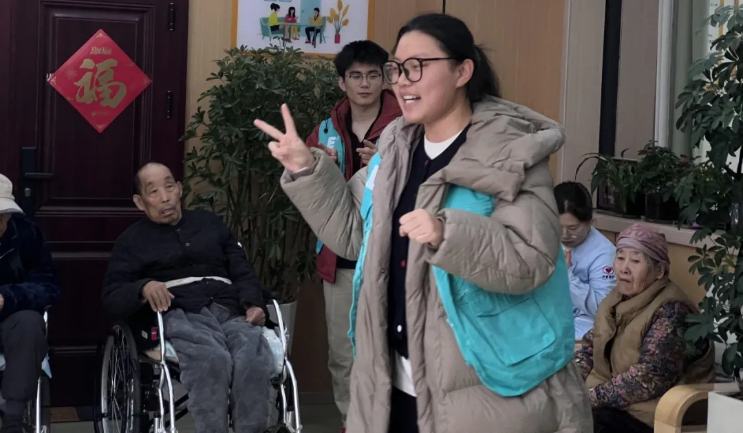 手把手指引间,手势舞教学趣味盎然——抬手、转身、比心,简单动作里满是欢乐。老人们脸上漾起孩童般的笑容,欢声笑语驱散了岁月的沉寂。