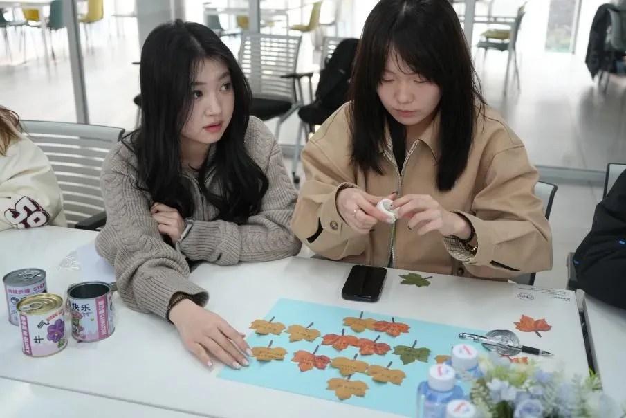 树叶语录创作同样充满创意:同学们用形态各异的秋叶制作便利贴,在叶片上写下 “植此青绿,共护家园”“种下希望,收获美好” 等植树节寄语,再将这些带着温度的叶片拼贴成创意作品。自然之美与青春心意交融,让环保理念以更鲜活的方式扎根心中。