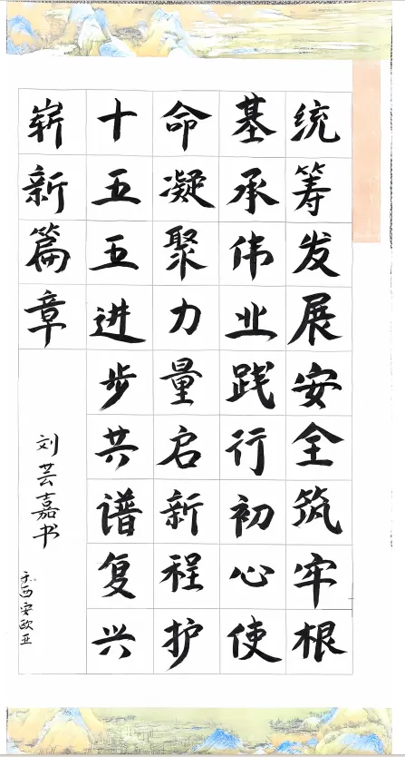 本次书画征集活动作为第五届“长安杯”国家知识竞赛系列活动的重要组成部分,紧扣“总体国家安全观”核心要义,以“统筹发展和安全 护航“十五五”新征程”为主题,面向分党委全体师生广泛征集书法、绘画作品,鼓励大家用艺术语言诠释国家安全的丰富内涵,抒发对祖国的热爱与守护国家安全的坚定决心。活动启动以来,得到了师生们的积极响应和热情参与,大家踊跃投稿、精心创作,用笔墨寄情、用色彩抒怀,涌现出一批主题鲜明、格调高雅、富有感染力的优秀作品。经过广泛征集和细致梳理,本次活动共收到各类作品19幅,其中书法作品16幅、绘画作品3幅。书法作品中,楷书端庄大气、篆书圆润端庄,笔墨之间尽显对国家安全理念的深刻理解,字字传递着青年学子守护家国的赤诚之心;绘画作品则以细腻的笔触、鲜明的色彩,将总体国家安全观的核心要义融入创作之中,或描绘山河锦绣的家国盛景,或展现青年守护国家安全的责任担当,生动诠释了“国家安全,人人有责”的时代内涵。