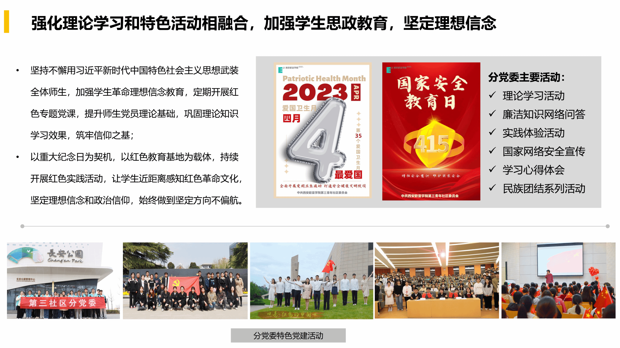 强化理论学习和特色活动相融合,加强学生思政教育,坚定理想信念