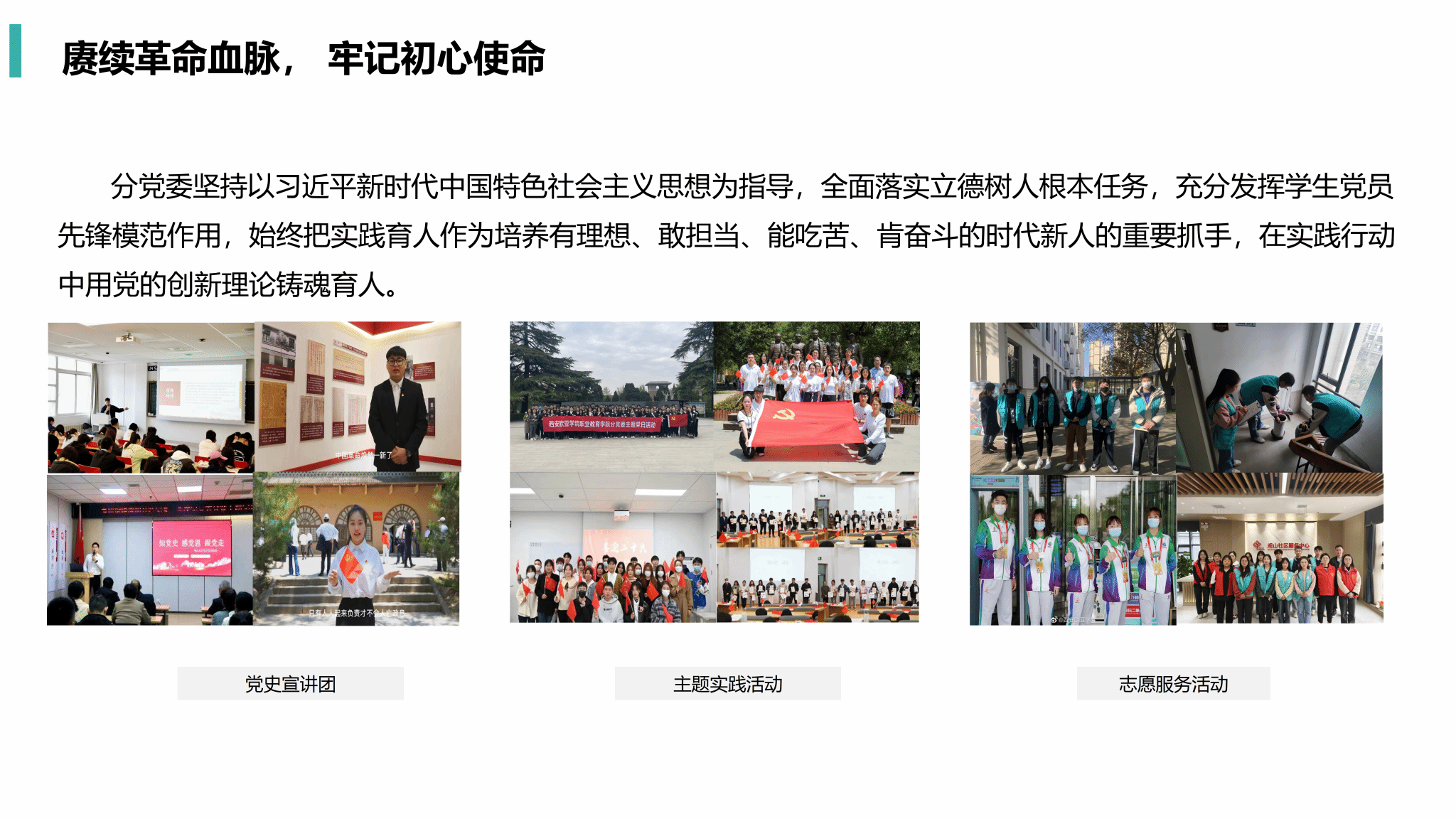 分党委坚持以习近平新时代中国特色社会主义思想为指导,全面落实立德树人根本任务,充分发挥学生党员先锋模范作用,始终把实践育人作为培养有理想、敢担当、能吃苦、肯奋斗的时代新人的重要抓手,在实践行动中用党的创新理论铸魂育人。