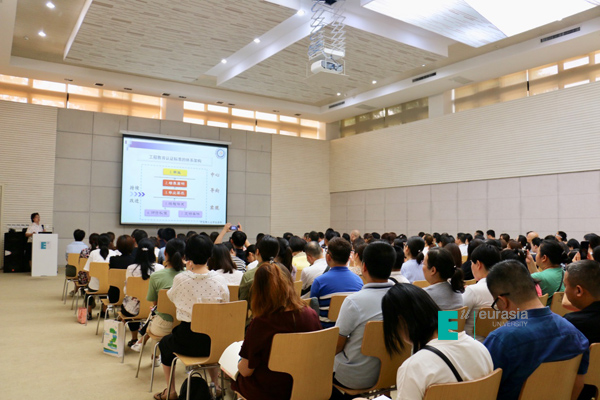 此次专题讲座由校长助理张乐芳主持,高级顾问曹明明致欢迎词。高级顾问戚世梁、校长助理赵军镜、王艳,各分院、职能处室领导及分院专业负责人、课程负责人及骨干教师共计一百八十余人参加了此次活动。
