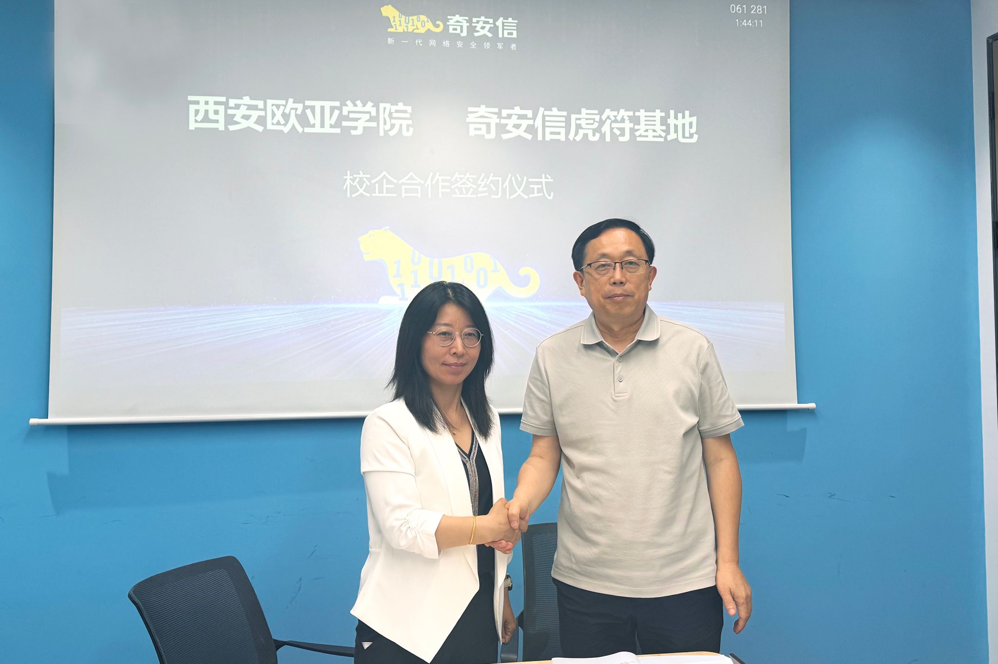 奇安信集团副总裁程国章与KY开元集团官网入口副校长张乐芳共同签署战略合作协议