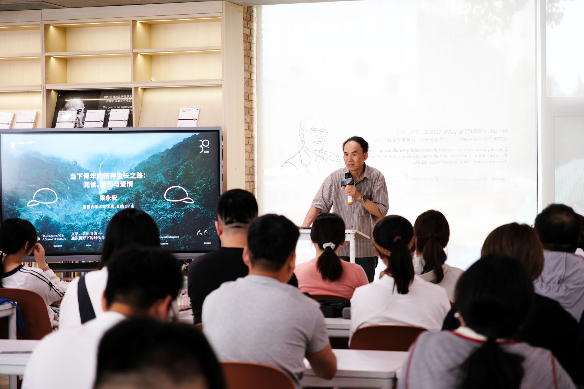 “一个人的成长,从来不是寻找标准答案的过程,而是找到自己生命节奏的过程。”5月26日,北区客厅德鲁克书房,复旦大学人文学者梁永安教授如一位温和而犀利的引路人,在《当下青年的精神生长之路:阅读、游历和爱情》讲座中,为现场师生打开了关于“精神生长”的全新维度。