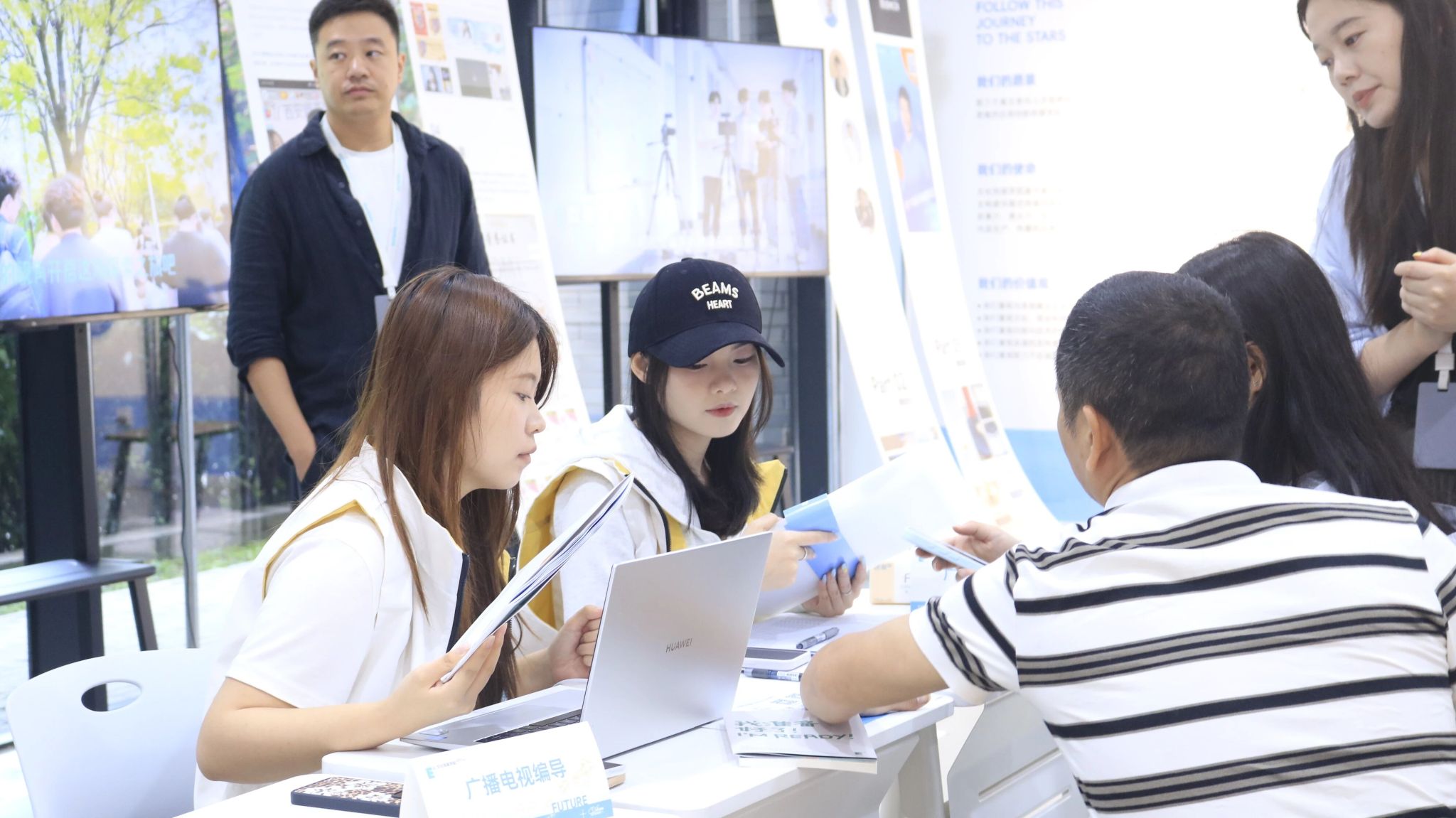 在杜比审听混录调色实验室,副院长曹小娟与各专业负责人、主管一起,为新生及家长详细讲解专业特色与发展前景。直播同步在线开启,吸引5000余人观看、100余次分享,收获近4万点赞,多名新生及家长参与互动和抽奖。