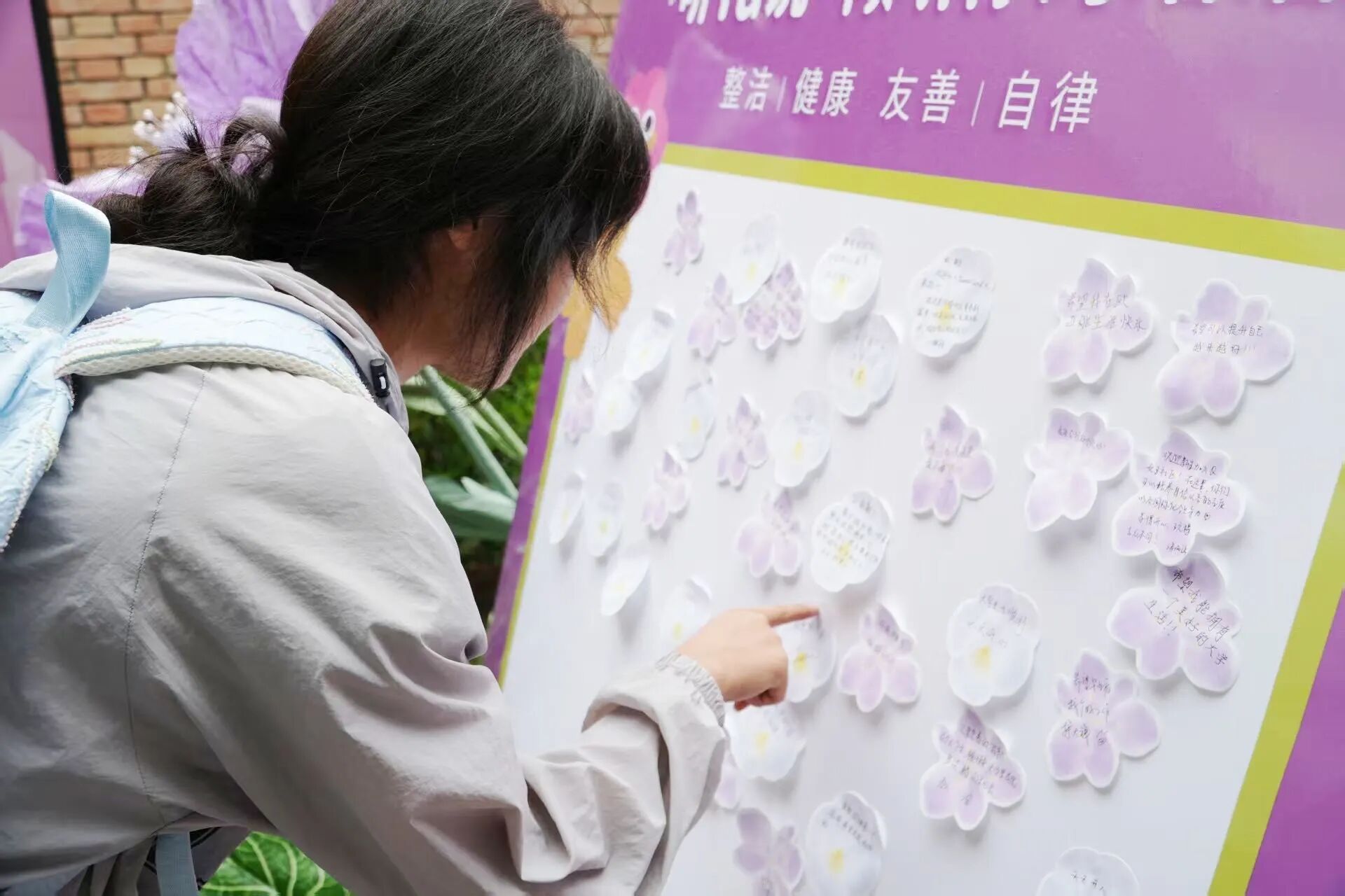 紫色的鲜花与暖心伴手礼赠予每位新生