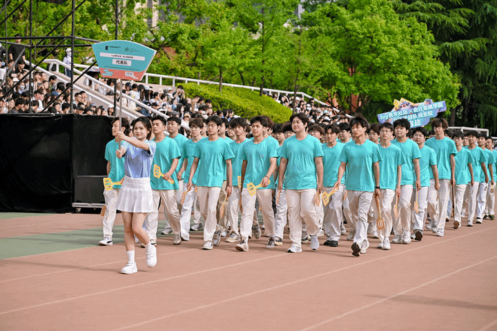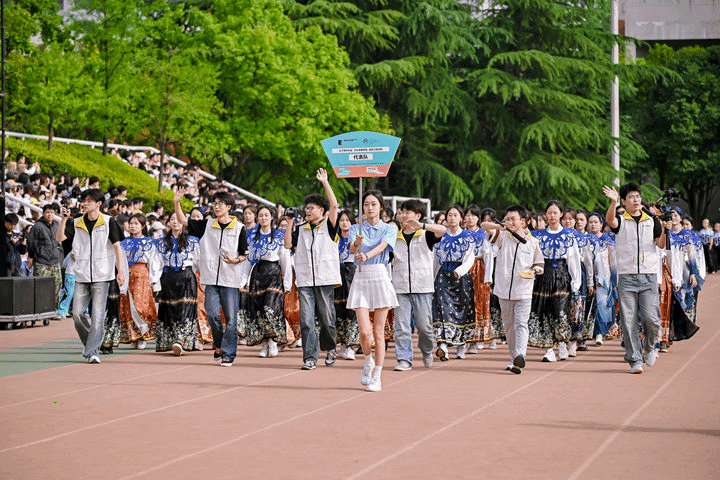 国旗、校旗、会旗方阵率先登场,体育联盟方阵紧随其后。篮球、足球、羽毛球、乒乓球、极限飞盘等运动健儿手持联赛旗帜,步伐有力,展现“以体育人,以体铸魂”的信念。