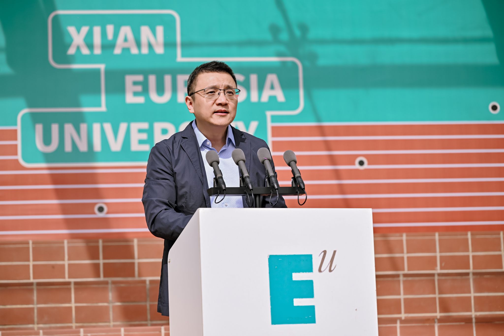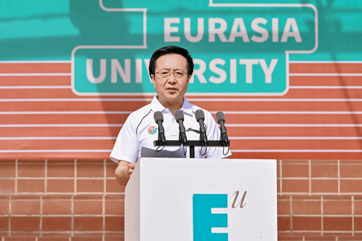 随后,校党委书记赵国华致开幕辞。赵书记回顾了欧亚学院三十年来的发展历程,强调“以体育人”理念对学子成长的深远影响。三十年来,欧亚始终将体育视为全人教育的重要一环。从一间教室到万平文体中心,从传统课堂到个性化培养,我们始终相信,运动场上的奔跑、协作,都是对未来的预演。他特别提到西区文体中心的落成,这座融合多元功能的现代化场馆,将成为师生探索运动潜能、践行健康生活的崭新起点。
