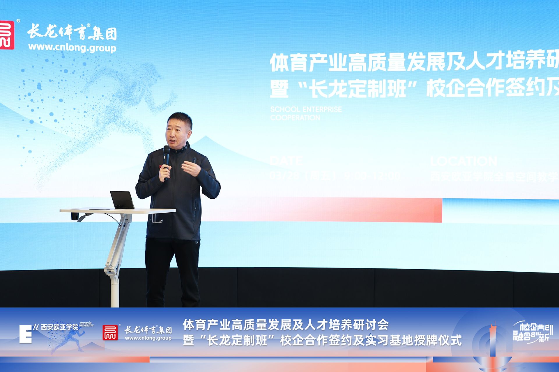 “在数字化加速升级与国际化拓展的大环境下,体育产业人才短缺问题日益凸显,陕体集团十分认可实践育人对于填补人才缺口的关键作用。未来,陕体集团将携手长龙体育集团等,整合多方资源,为欧亚学子打造充足的实习与就业岗位,搭建起人才成长与产业发展紧密相连的桥梁,全方位助力学生职业发展,共同为体育产业的高质量发展注入强劲动力。”