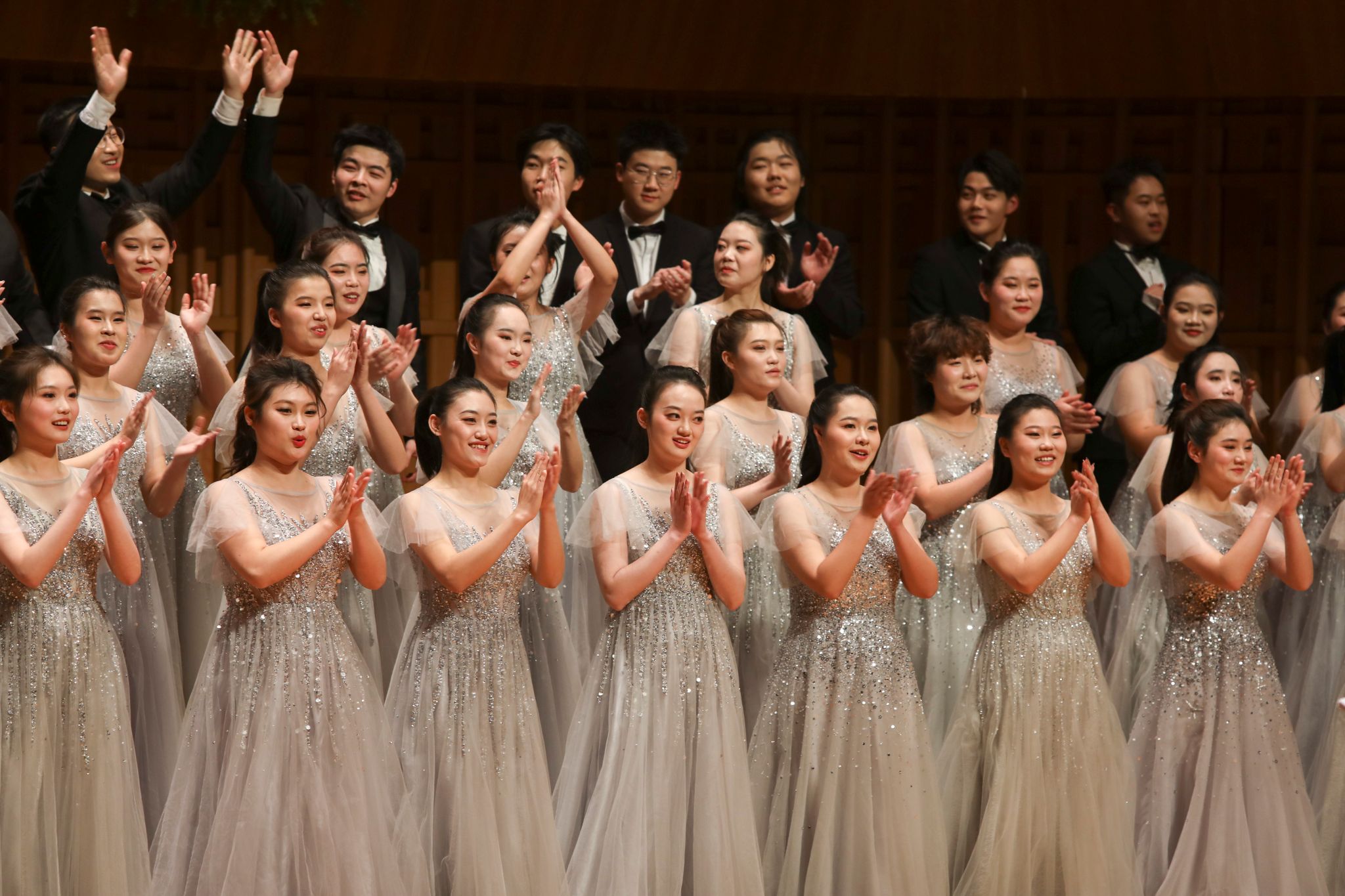 出发之前,一堂诙谐幽默的《声部介绍歌》“小课堂”提前上线。当诡异的BGM响起,舞台上各个声部便开始了“明争暗斗”的戏码,女高音、女中音、男高音、男低音的成员们相互“较劲”,生动有趣的对话,让舞台下“爱凑热闹”的观众们欢笑不停,还学到了不少音乐知识。