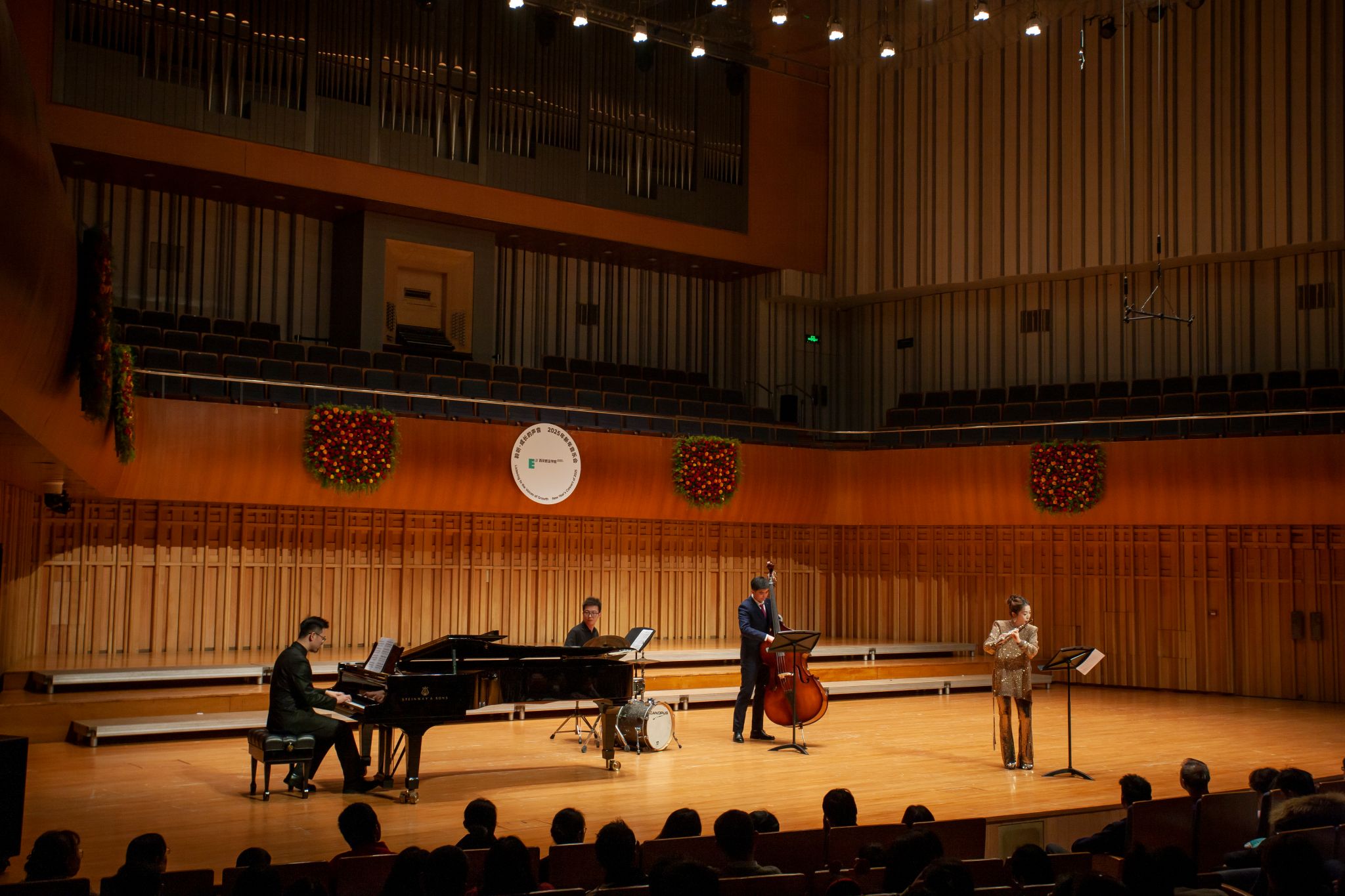 克劳德・波林的《长笛与爵士三重奏组曲》(选段 Ⅱ Sentimentale)则是一场古典与爵士碰撞的奇妙体验。长笛、钢琴、贝斯和鼓节奏完美融合,长笛手优雅的姿态和灵动的指法,配合着爵士乐队的即兴演奏,让整个舞台活力四射。