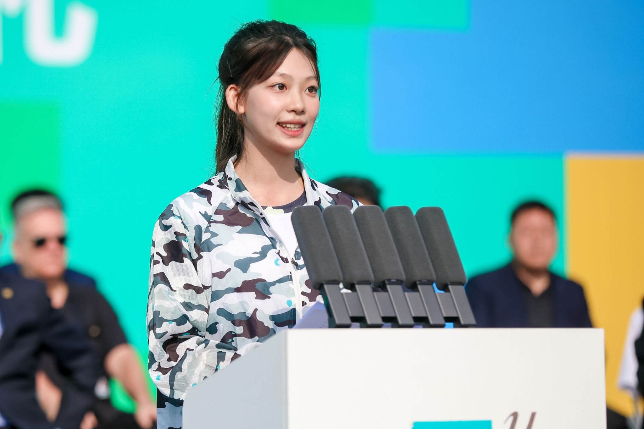 (图三)新生代表、文化传媒学院数字出版专业学生韩玉婷发言
