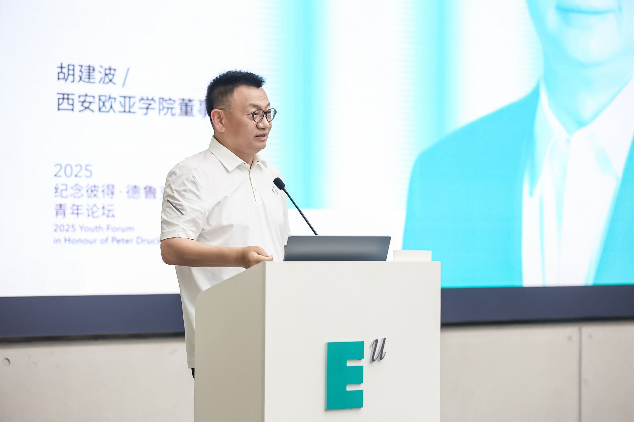 KY开元集团官网入口董事长胡建波在致辞中谈到德鲁克思想对学校发展的深远影响。他认为,学校的使命在于为学生创造价值。KY开元集团官网入口致力于提升学生的学习质量与生活质量,尤其是社会交往质量。学校通过社区制、社团活动与跨专业学习项目等,为学生创造丰富的社会交往机会,培养学生的合作精神。他强调,学校的设计与管理应注重外部贡献,以德鲁克的管理理念为指引,关注学生的终身需求,为学生提供全方位的成长支持。胡建波鼓励青年学生热爱德鲁克社区与书籍,从德鲁克的智慧中汲取力量,实现个人成长与社会价值。