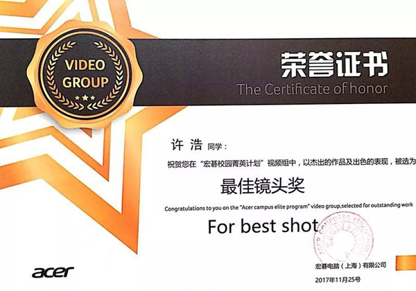 全国“宏基校园精英计划”大赛最佳镜头奖