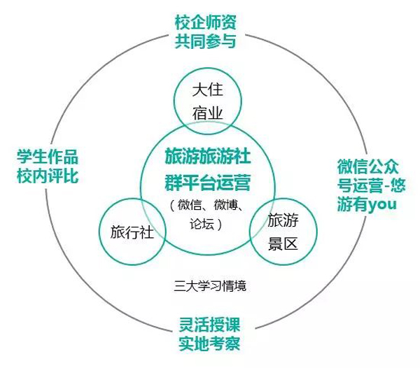 本课程植入江苏有客科技有限公司和上海金棕榈企业机构“旅游目的地营销”、“旅游大数据”、“旅游社群平台营销”。