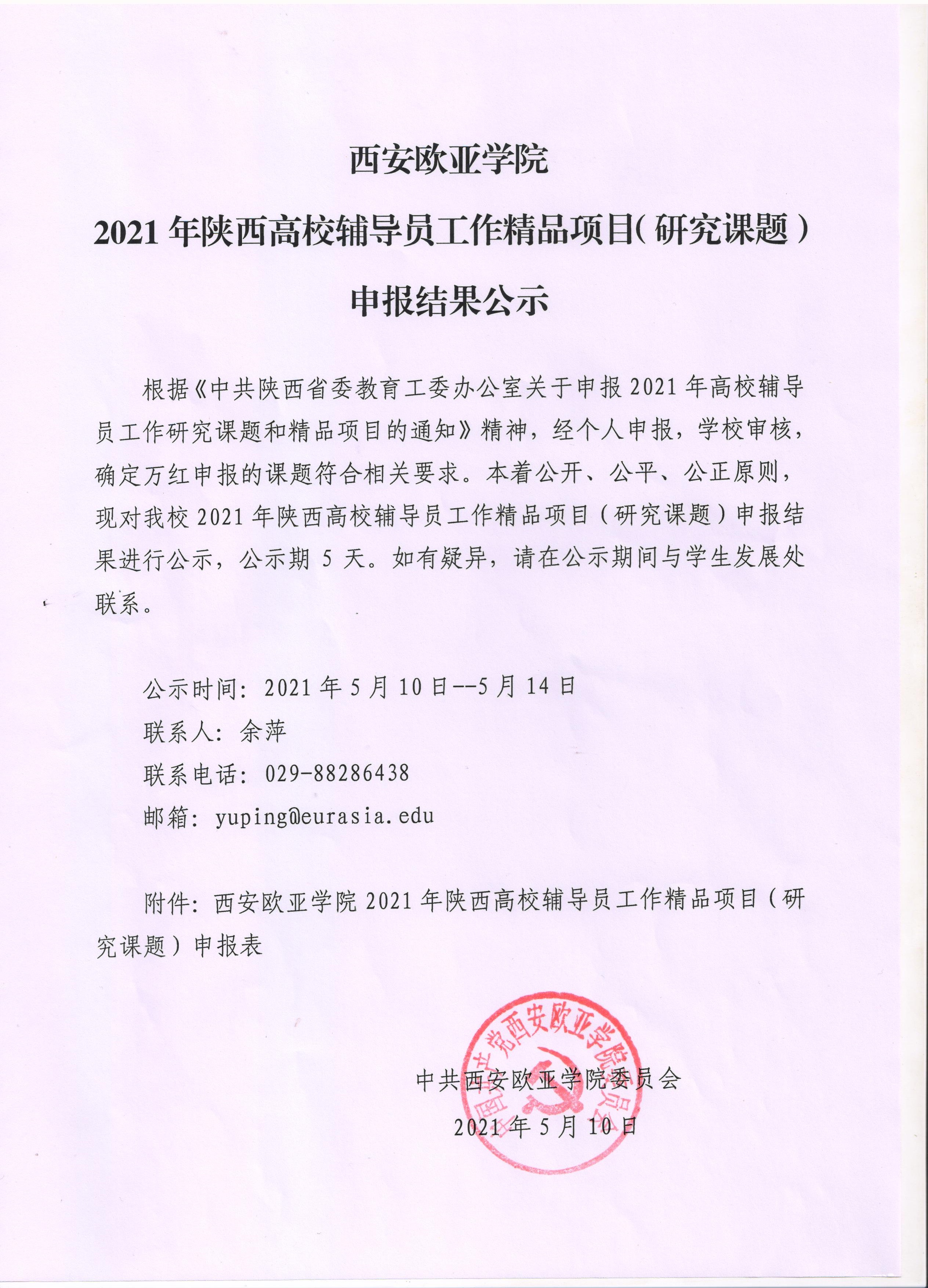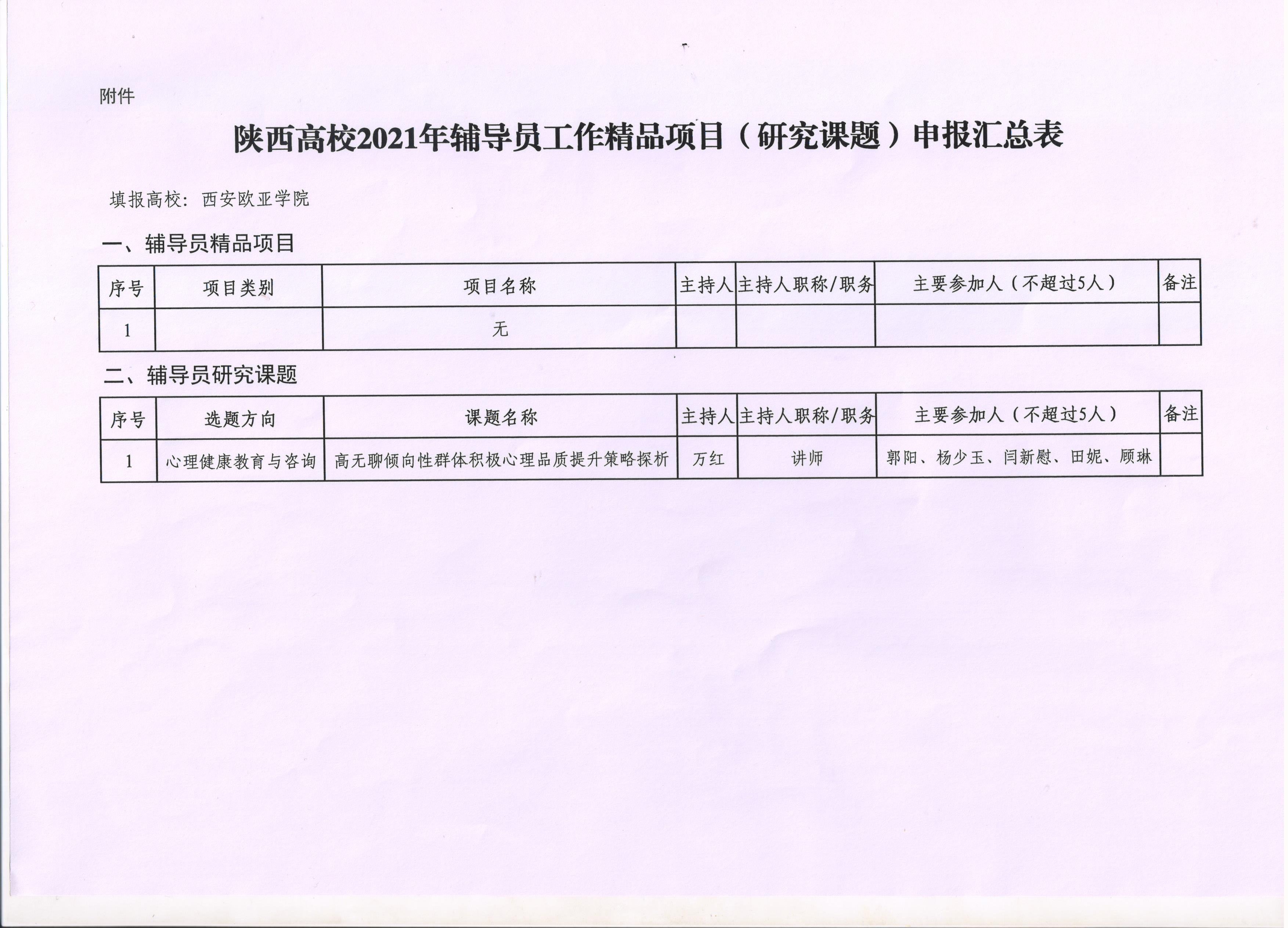 KY开元集团官网入口2021年陕西高校辅导员工作精品项目(研究课题)申报结果公示