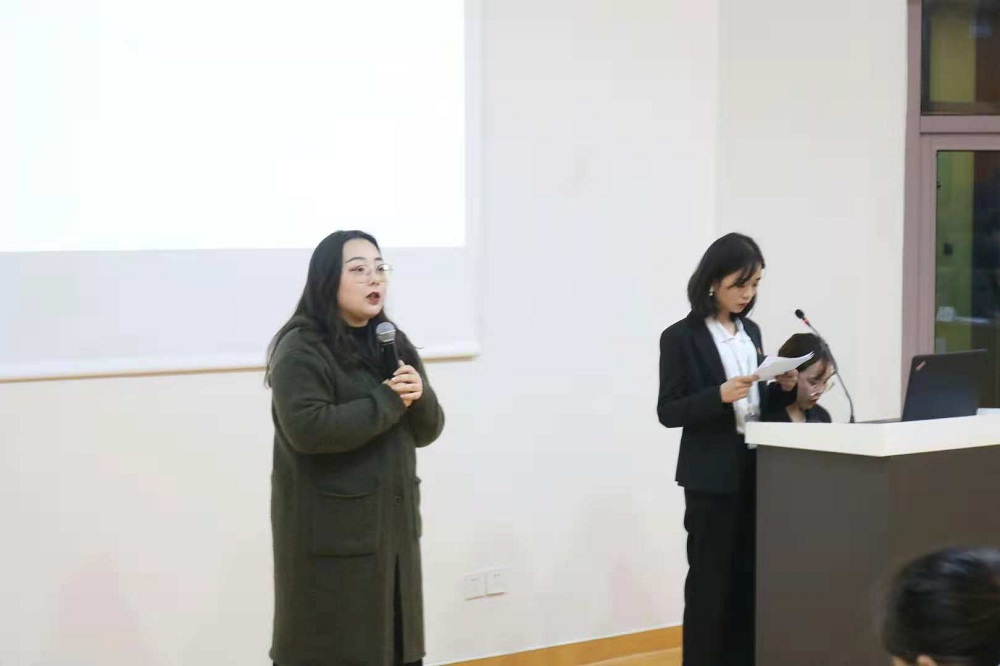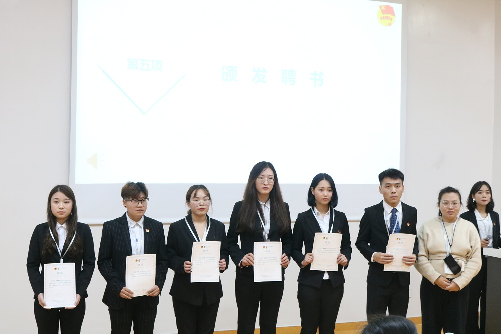 杨清老师、杨少玉老师为她们颁发聘书并佩戴工作牌