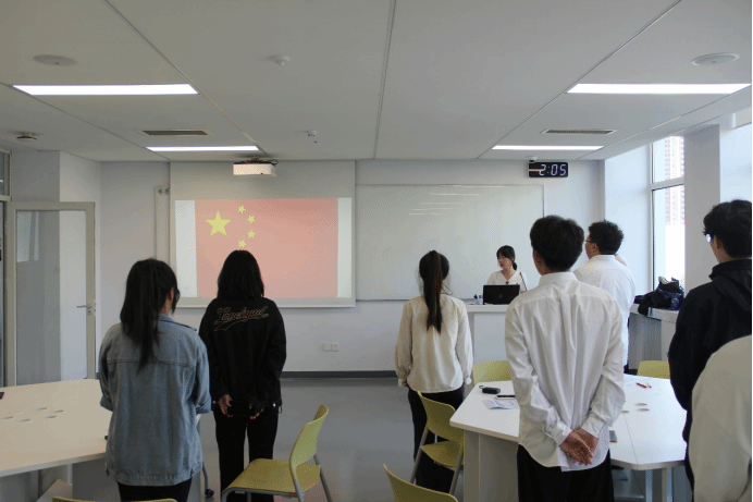 活动伊始,雄壮的国歌声响起,全体人员神色庄严,向国旗行注目礼,齐声高唱《义勇军进行曲》,唱响爱党爱国爱社会主义的豪迈主旋律。
